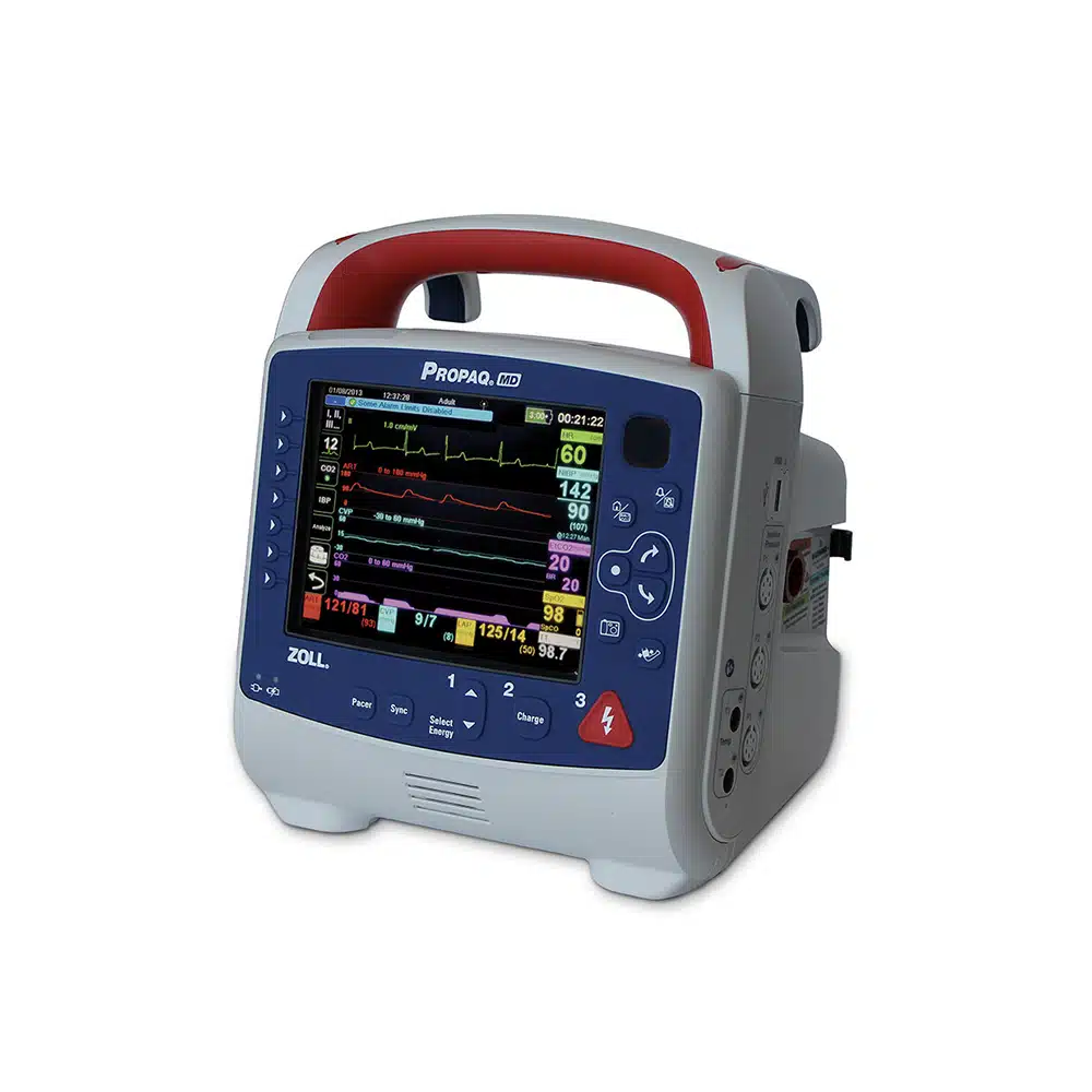 Zoll X/Propaq MD. Top of the line and lightweight. Monitors heart rhythm, oxygen levels, blood pressure, CO2 level.