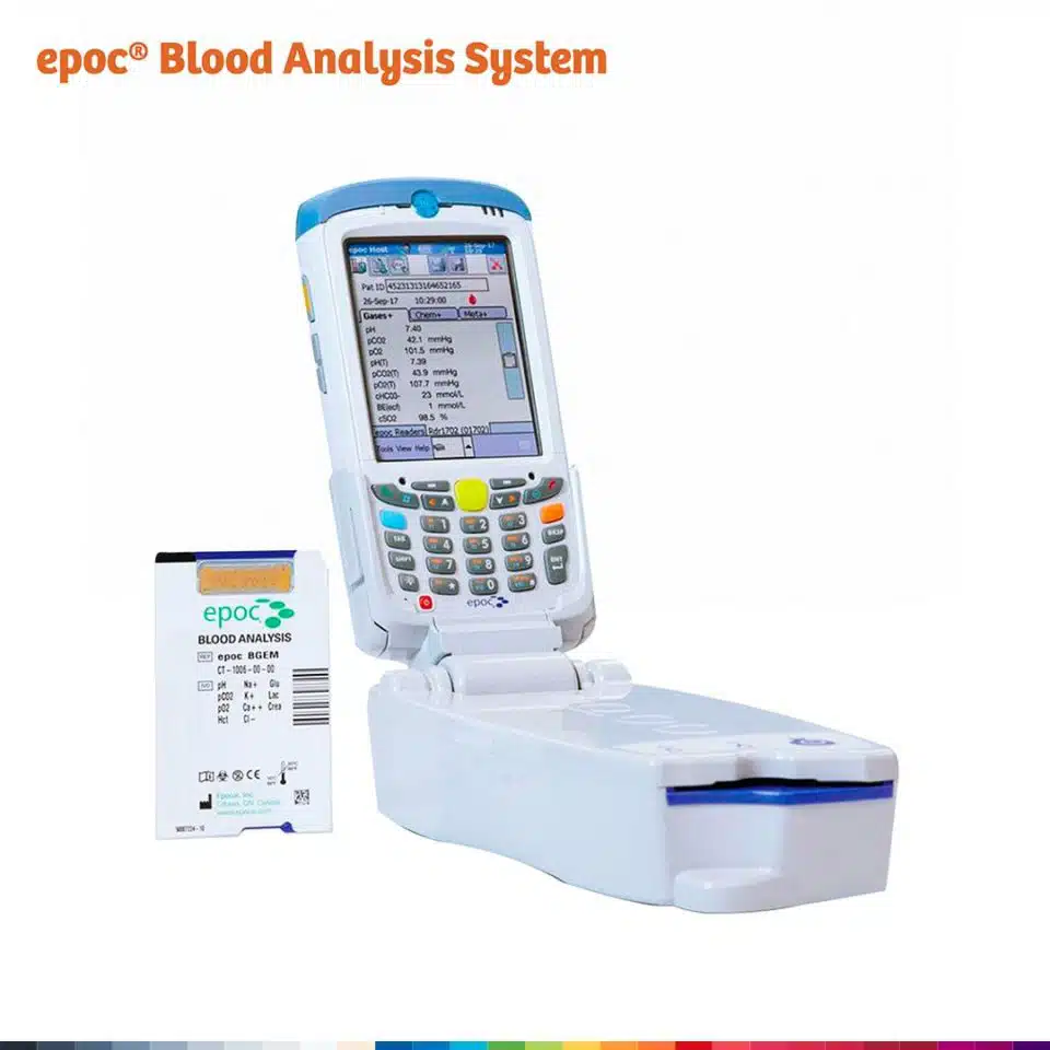 EPOC by Siemens. A handheld device capable of blood gas, electrolites and hematocrit analysis.